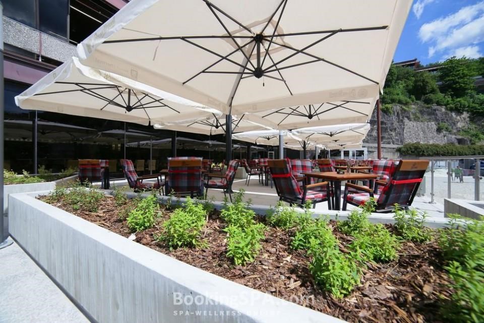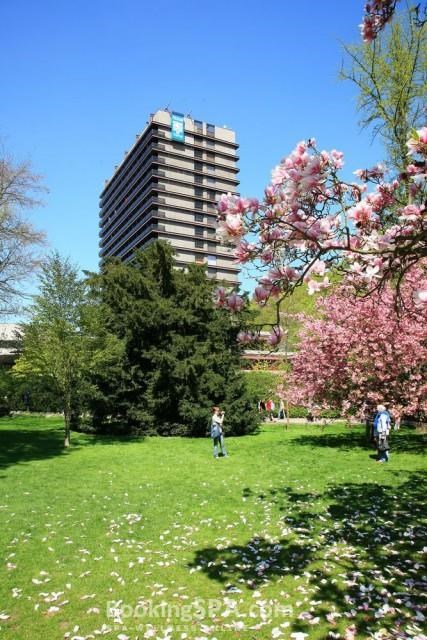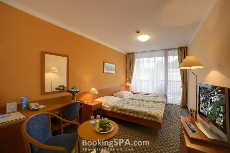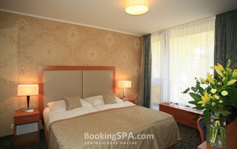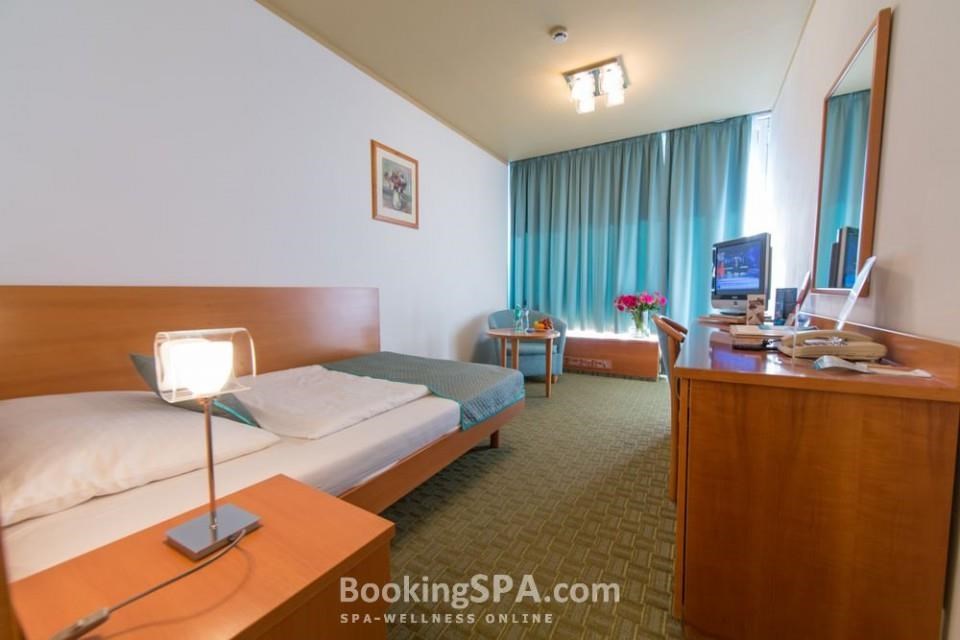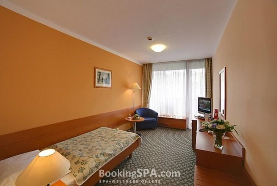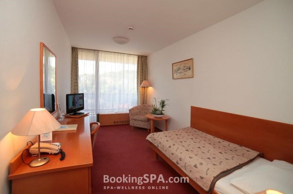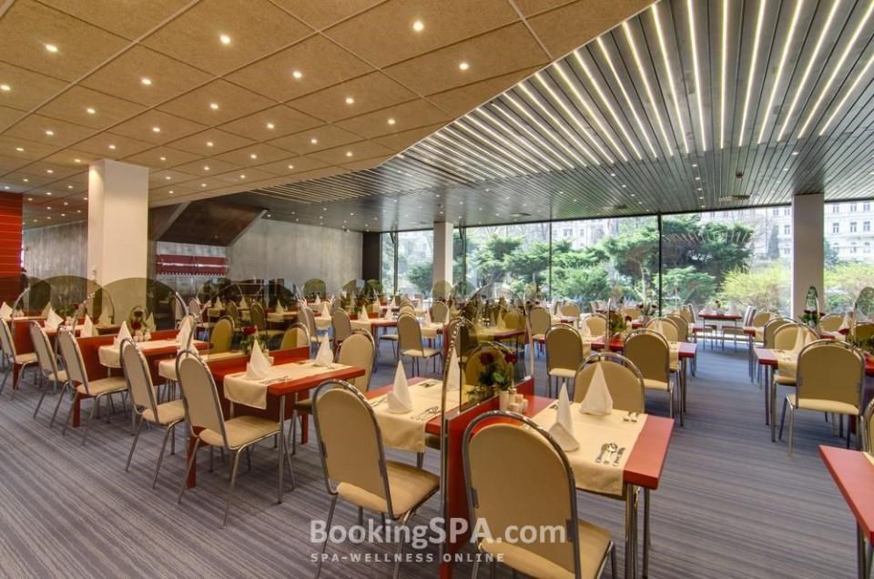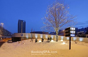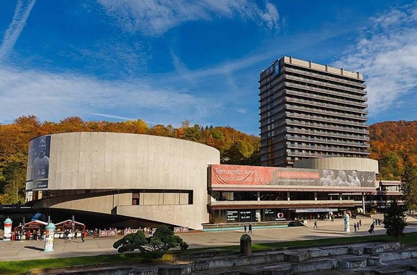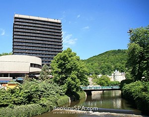 находится близко от всех минеральных источников, построен в стиле функционализма, близко от центра города, у парка им. Дворжака