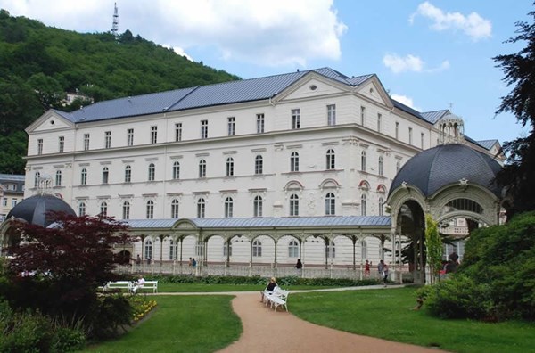 Это историческое трехэтажное здание, прилегающее к садам Дворжака и с видом на реку Тепка. В летние месяцы есть возможность приятного сидения во внутреннем атриуме здания. Уникальное здание с 1855 года имеет богатую историю и является первым комплексным спа-центром в Карловых Варах.